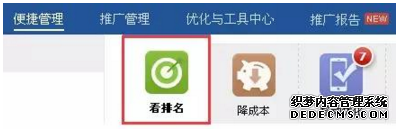 6.使用看排名工具:在鳳巢賬戶里面推廣管理旁邊有個便捷管理-看排名工具,可以查看PC和移動端的部分重點詞的排名情況(比較接近實時排名)。但最多只能關(guān)注150個重點詞,局限性比較大,排名更新頻率也沒那么快。