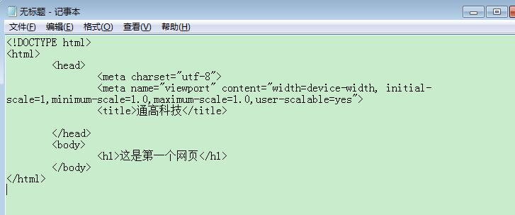 - <h1>這是第一個(gè)網(wǎng)頁(yè)</h1>