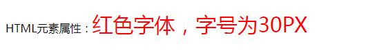 - <p>HTML元素屬性:<span style="color:#ff0000;font-size:30px">紅色字體,字號為30PX</span></p>