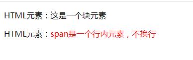 - <p>HTML元素:<span style="color: red;">span是一個行內(nèi)元素,不換行</span></p>